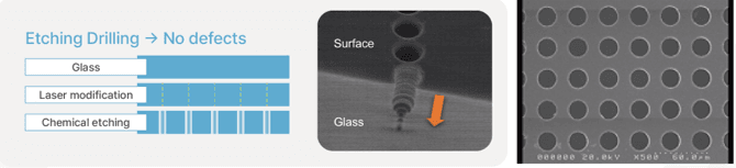 For superfast computing performance, semiconductor packaging is getting more integrated. Our LMCE®* technology can provides microstructured glass wafer for semiconductor, MEMS and mold, etc.