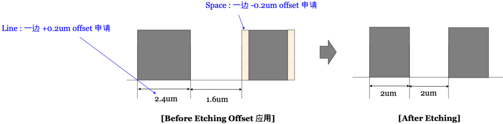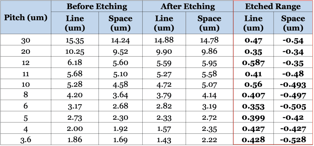 - 檢查每個間距約4um的蝕刻量,並確認電路偏移可以最小化 提高設計自由度