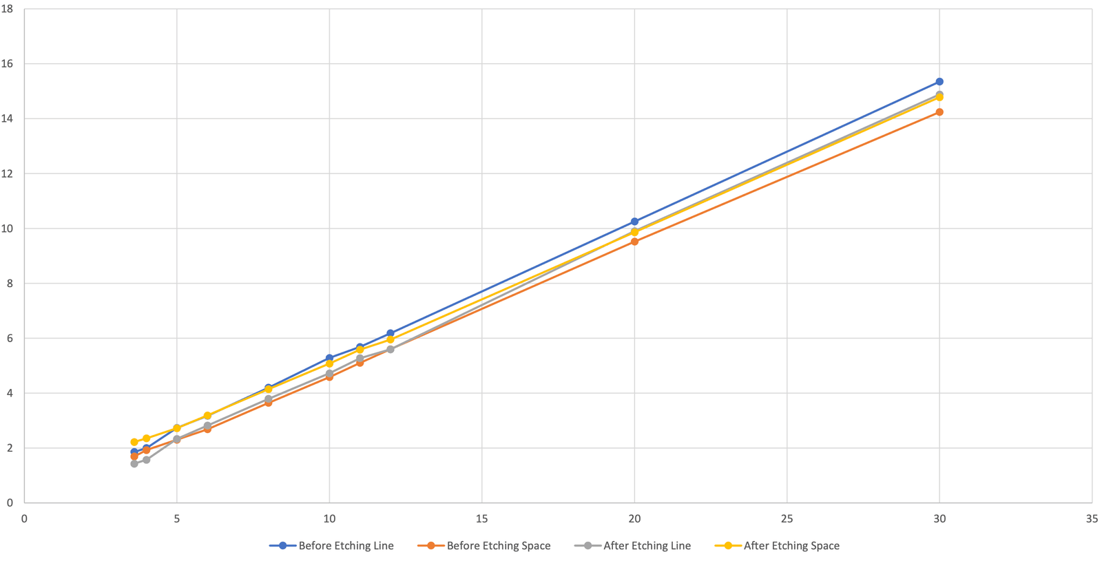 Etching 确保线路直线度