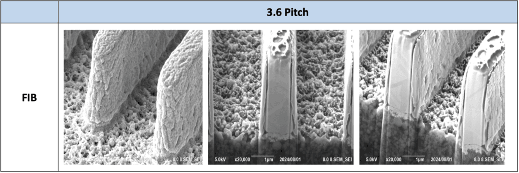 - 確保當前開發藥物的寬蝕刻範圍:確保蝕刻低於30 間距、20 間距和 10 間距,且無底切
